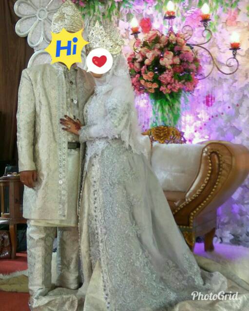 Buy tema white putih / cream ( set baju pengantin ) baju nikah bertunang set couple set sedondon veil nikah set bertunang.
